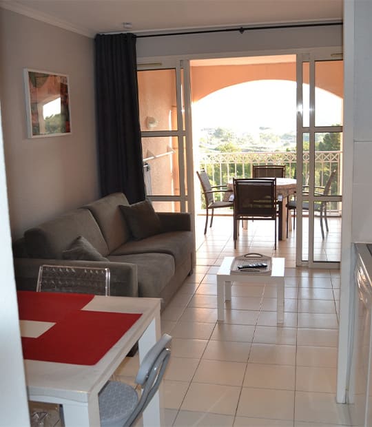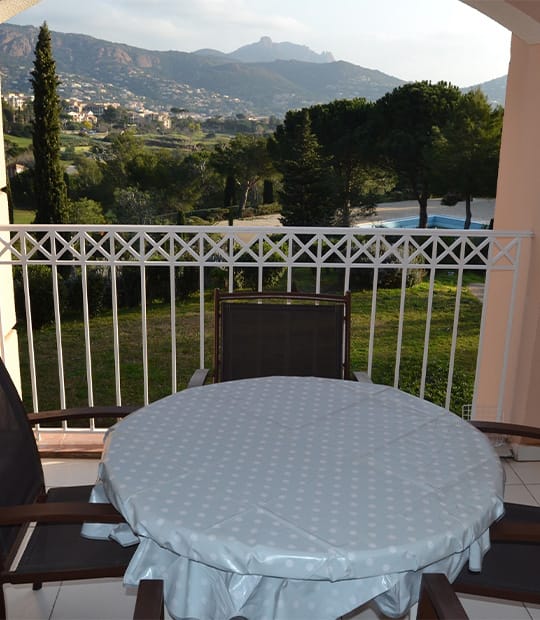 L’appartement 4 personnes est situé dans la Résidence du Cap Estérel. La terrasse donne sur les magnifiques rochers du Cap Estérel ainsi que sur une des 5 piscines de la résidence.
